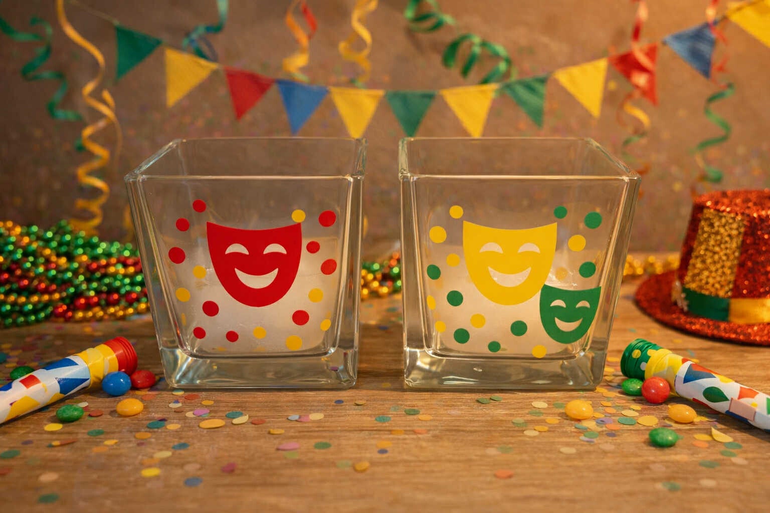 Maak het carnavalsfeest compleet met deze vrolijke, multifunctionele decoratieglaasjes!