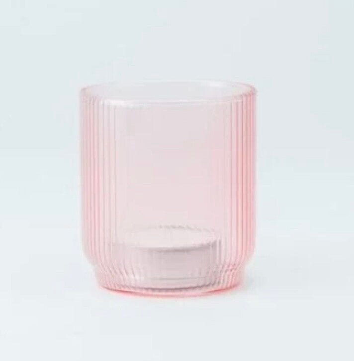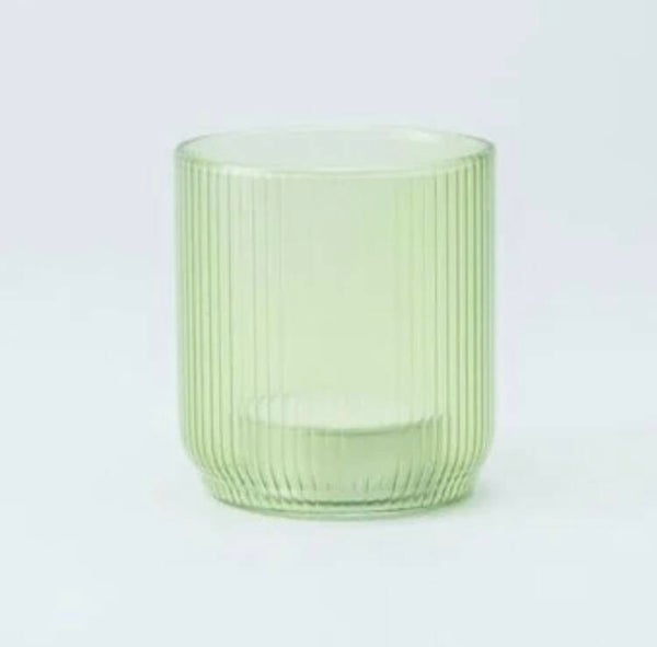 Theelichthouder geribbeld glas, inclusief theelichtje